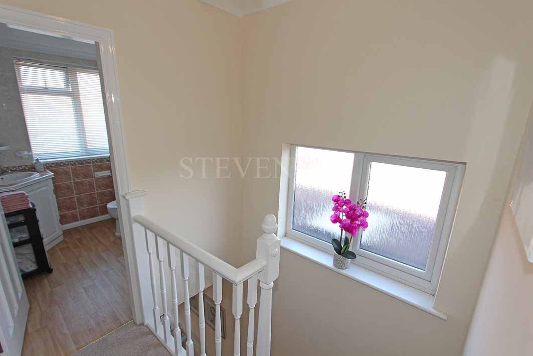 LANDING Loft access, UPVC double glazed opaque window overlooking the side and doors leading off to: