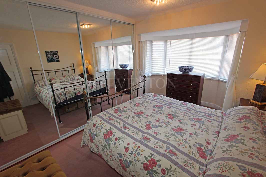 14’1’’ Into the front Bay window (4.29m) x 11’max (3.35m)(measured into wardrobes) Having a fitted range of wardrobes with four sliding mirror door fronts, radiator, power points.