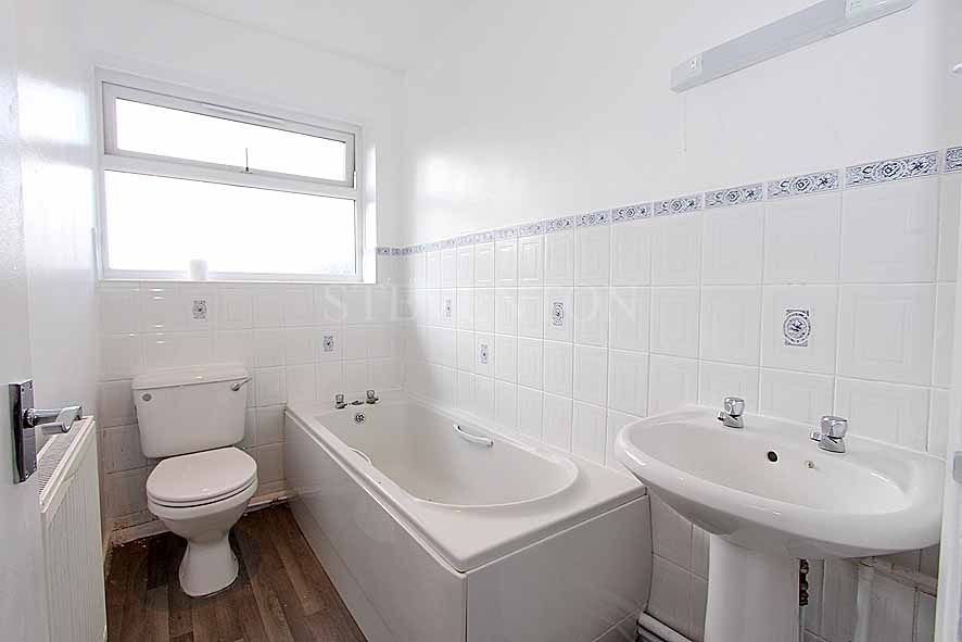 8’ (2.44m) x 4’9” (1.45m) having a fitted white suite with complementary chrome fittings comprising; panel bath, pedestal wash hand basin with shaver point/light above, close coupled W.C., part tiled walls, ceiling spot lighting, radiator and UPVC double glazed opaque window overlooking rear.