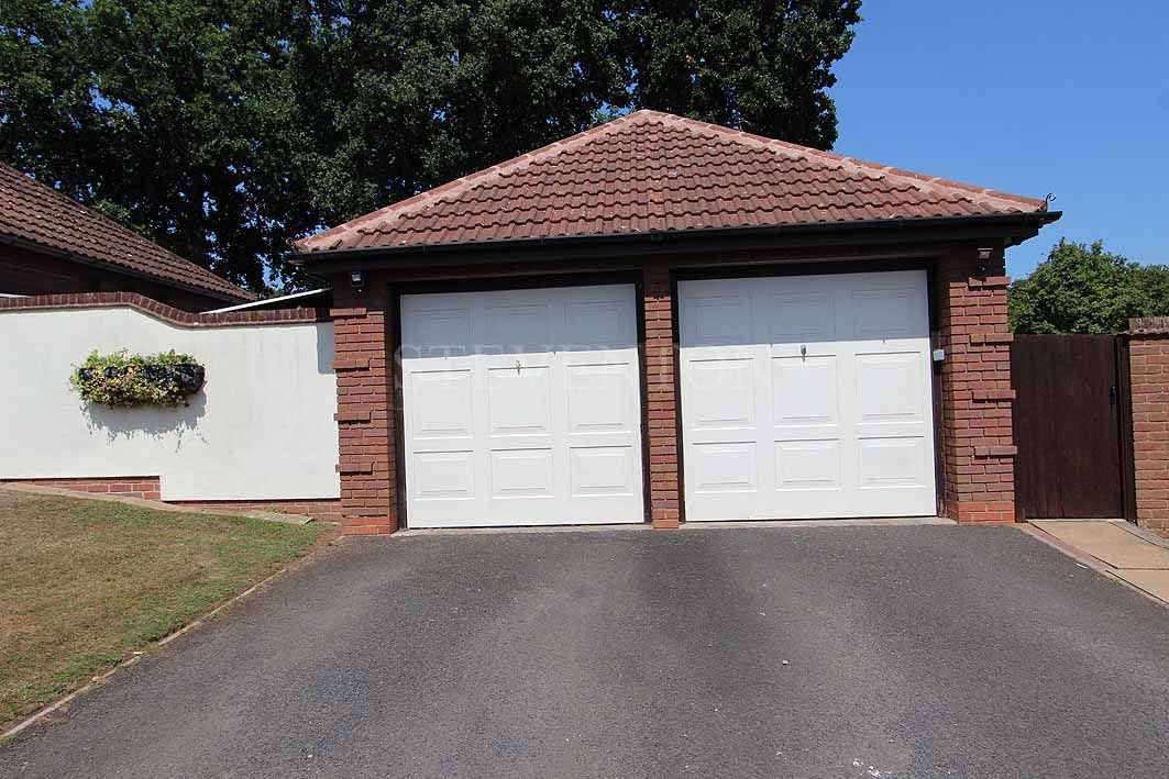 17’ 4’’ ( 5.28m ) x 17’ 2’’ ( 5.23m ) Two up and over doors, side door, loft over, strip lights, power points and two circular oriel windows.