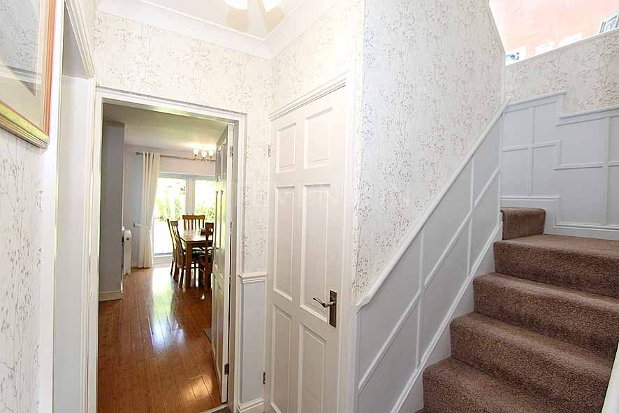 having coved ceiling, return staircase leading off, under stairs storage cupboard, and doors leading off to: