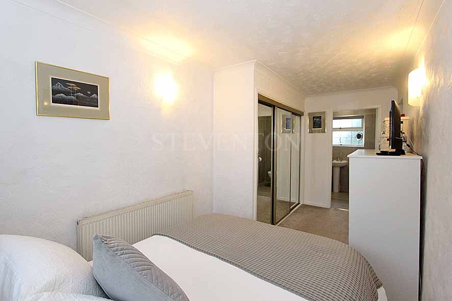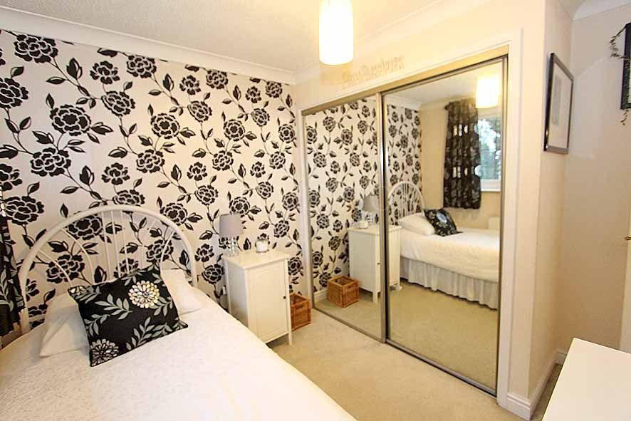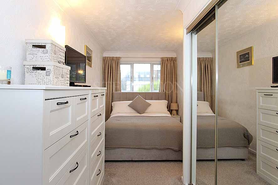 7’6’’max (2.29m) x 6’3’’ (1.91m) having built-in wardrobe range with three sliding mirror doors, coved ceiling, radiator and UPVC double glazed window with additional third layer of glazing overlooking front.