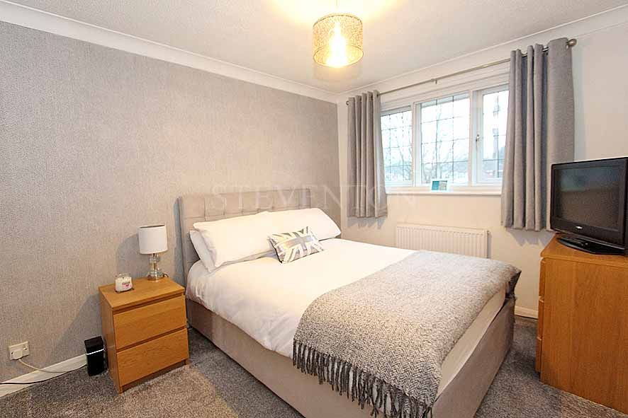 10’7’’ (3.23m) x 9’ (2.74m) having built-in wardrobe range with two sliding mirror doors, coved ceiling, radiator and UPVC double glazed window with additional third layer of glazing overlooking front.